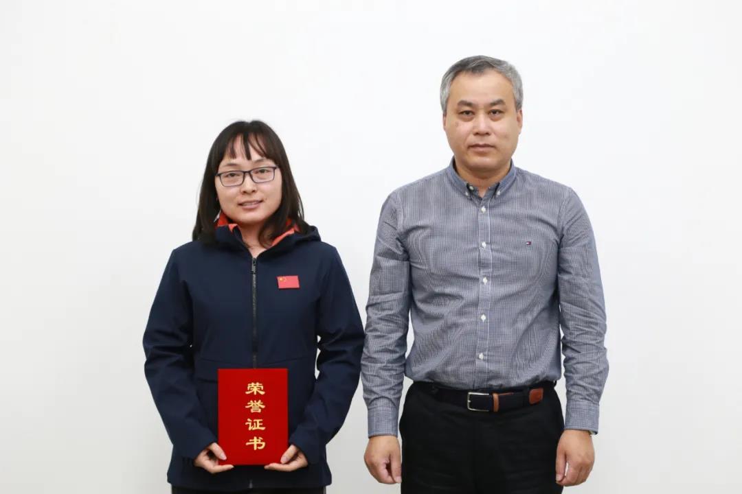 田國承宣讀凱博科技2021年度表彰文件,與會領導為優秀員工頒獎。